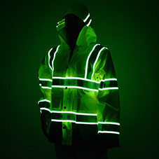 A typical high visibility garment offers daytime and nighttime visibility - with one flaw. In the day - the bright colored fluorescent fabric keeps users conspicuous. In the night, silver retro-reflective tape kicks in by reflecting light back to its source (car headlights for example). When no light source is available, both the silver reflective and the fluorescent fabric are invisible. Here's where Alpha WorkWear offers a solution!